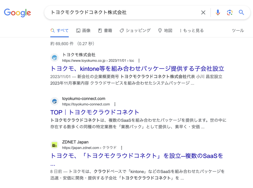 しかし、創業リリースを配信することで、第三者のメディアによって会社に関する情報が掲載されるようになります。この結果、検索結果が変化し、会社に対する信頼感が向上することにつながります。